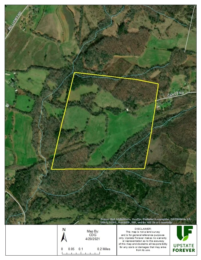 Hereford Hill Farm is a 100-acre property with about half of property being an active, family-operated cattle ranch. The other half is forest and bottomlands that provide excellent habitat for numerous native species. The property features over 6,000 linear feet of stream bank on two blue line streams that serve the Saluda River by way of Grove Creek.